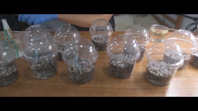 การเอาเนื่อเยื่อ Alocasia cuprea ลงอนุบาลในแก้วอบ