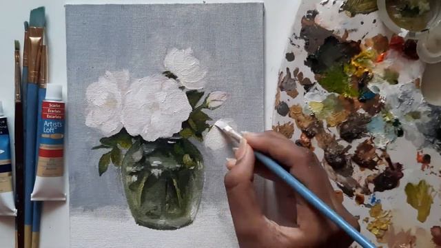 Oil painting of flowers in a vase || 8 hours of work