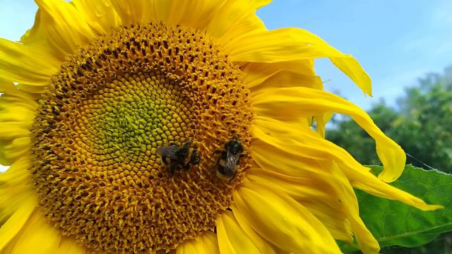 Шикарный подсолнух с милыми шмелями / Chic sunflower with cute bumblebees
