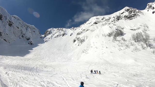 Yuriev Khutor (Юрьев хутор) sunny day freeride skiing at Rosa Khutor, Sochi.