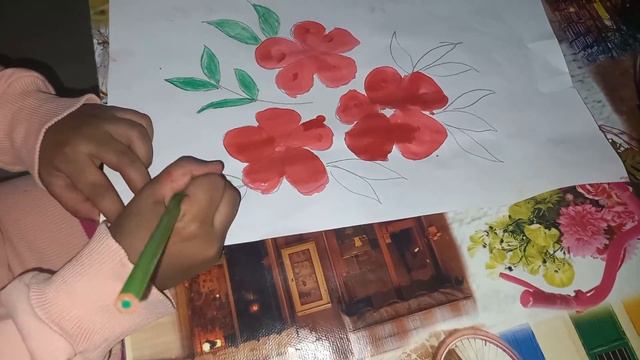 hibiscus painting - @ my 4th age old vedeo - painting my Own way , but so nice..