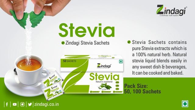 Zindagi Stevia Sachets - Pure Stevia Sugar Extract - Sugar-Free Sweetener