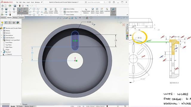 CIRCULAR PATTERN and Revolve Example 2 in SolidWorks in 2 Minutes!