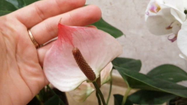 Антуриумы, орхидеи и кошка в кадре. Цветение февраля.