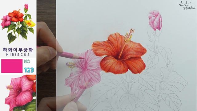 깊은 색감의 꽃은 어떤 느낌일까? | 하와이 무궁화 색연필 그리기 | 보태니컬아트 배우기