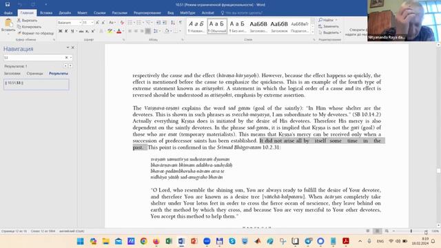 Изучение избранных стихов (132). Шримад Бхагаватам 10.51.53 (2024.02.18)