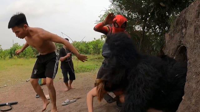 Team Spider-Man With Pitbull Dog Fight Giant Python And King Kong Monster To Save The Boy