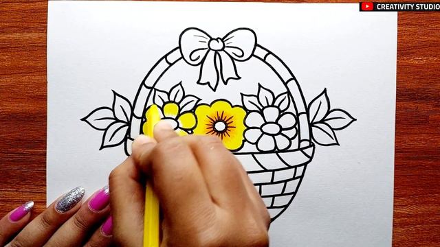 Flower Basket Drawing || How to Draw Flower Vase Step by Step || Draw Basket || Creativity Studio.
