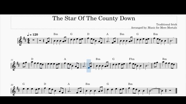 The Star of County Down – Traditional Irish March – Play Along for Violin / Flute or Guitar