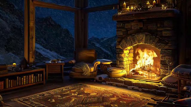 Cozy Reading Ambience with Jazz Piano Music 📚 Warm Fireplace & Snowfall for Sleeping