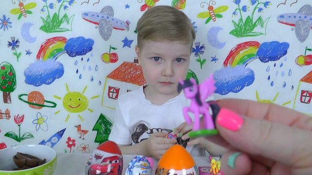 Распаковка киндеры май литл пони тачки и воины. Видео для детей. My Little Pony Cars kinder surpris
