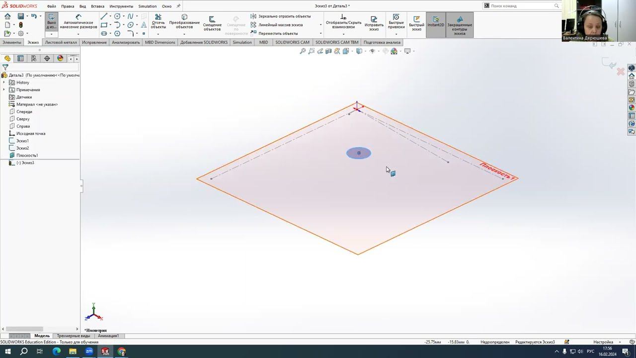 SolidWorks. Редактируем плоскость эскиза.
