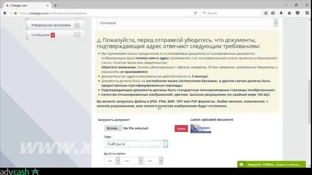 Changex: Как верифицировать адрес?