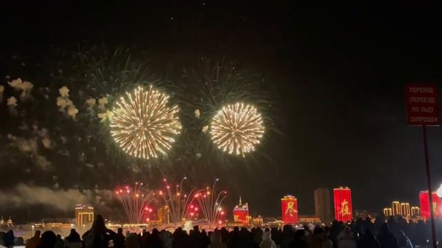 Фейерверк в Хэйхэ по случаю Нового года в России