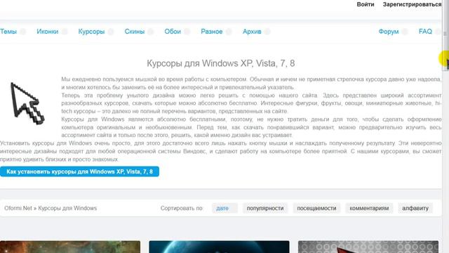 Где и Как установить курсор мыши