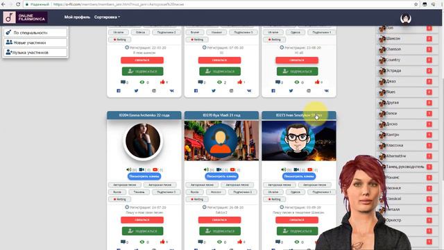 Обзор раздела "Участники" портала Online Filarmonica