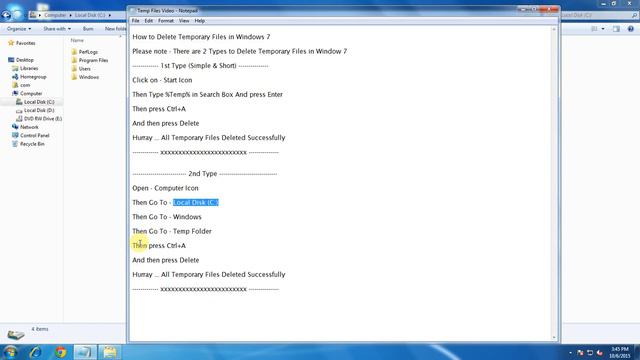 How to delete Temporary files in windows 7 in 2016