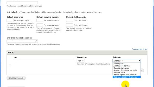 Создание типа номера