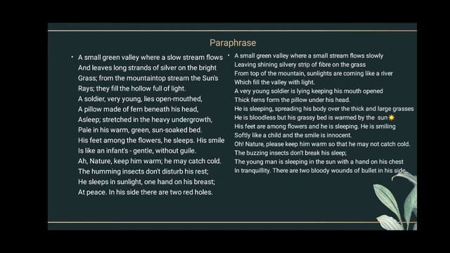 Asleep in the Valley/Le Dormeur du Val Full analysis of the Poem