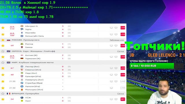 СТРИМ ПО СТАВКАМ! Ростов-Химки! ПСЖ-Нант! Марсель-Милан! Лестер-Севилья! Англия-Германия!