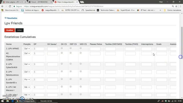 team sheet