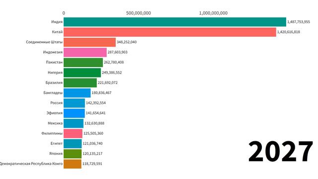 Рост населения, % по странам (1950–2100 гг.)