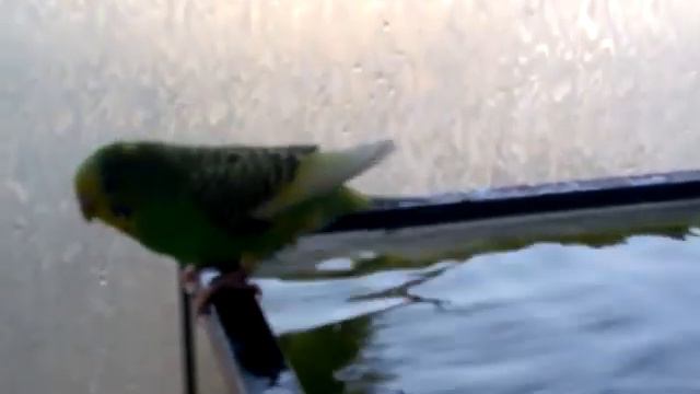 Попугай купается в аквариуме)))