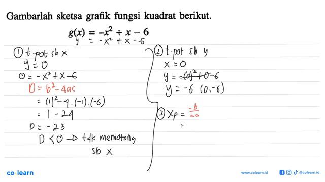 Gambarlah sketsa grafik fungsi kuadrat berikut. g(x) =-x^2+x-6