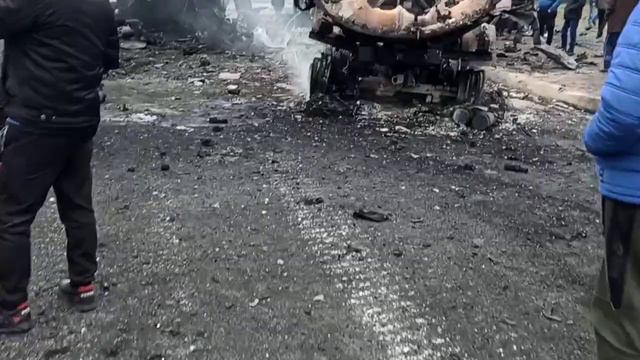 Мелитополь, разбитый танк. Неизвестно чей. Танк разорвало на части.