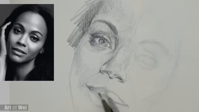 How to Draw a Pretty Face with Pencil - Zoe Saldana