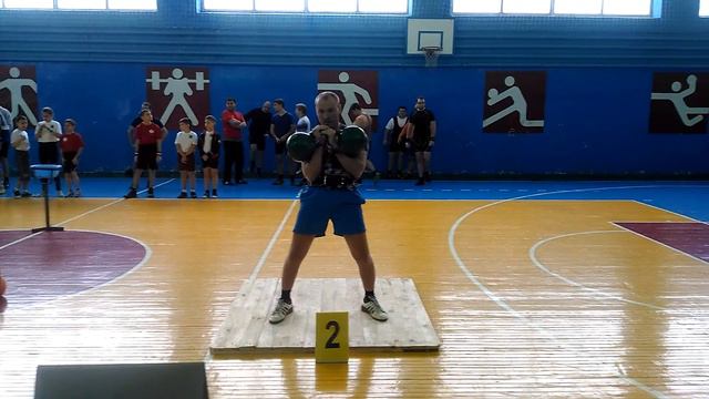 Толчок 2-х гирь весом по 24 кг.