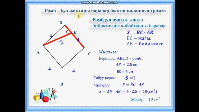 Кыргызча геометрия. 8-класс Параллелограммдын аянты.