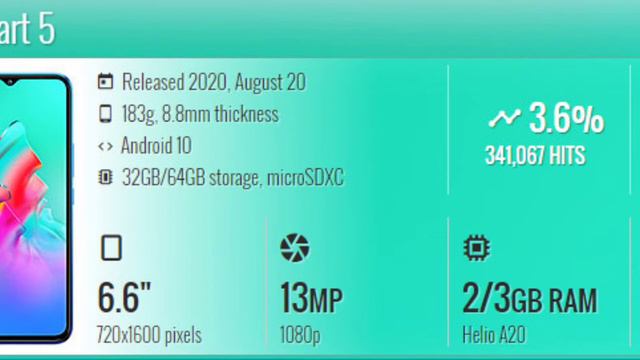 Details of Infinix Smart 5. Mid Range [ Under Rs.13000 ] Smart Phone in Nepal of Infinix Brand.