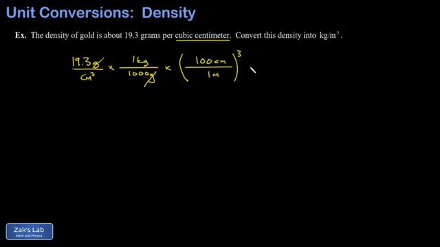 Density of gold unit analysis: convert the density of gold from g/cc to kg/m^3.