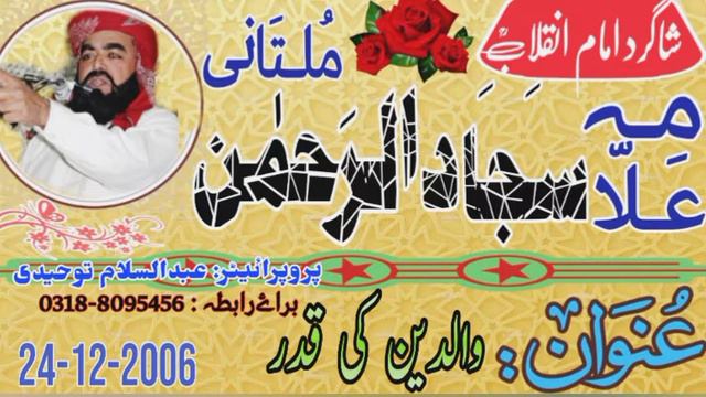 Allama Sajjad Ur Rehman Multani || WALDYN KI QADR || 24-12-2006