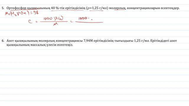 ЕРІТІНДІ ЕСЕПТЕРІ 2 бөлім. МОЛЯРЛЫҚ КОНЦЕНТРАЦИЯ