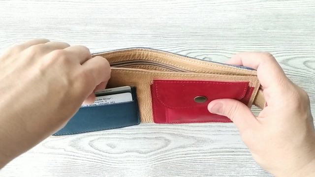 Кошелек ручной работы из мягкой натуральной кожи, с отделениями для карт, банкнот, монет.