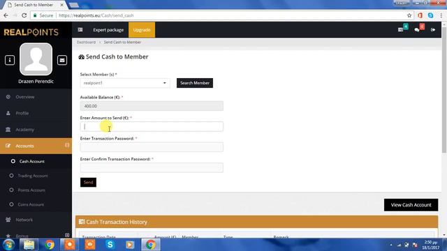 How to transfer Cash to other members ДЕНЕЖНЫЙ ПЕРЕВОД REALPOINTS