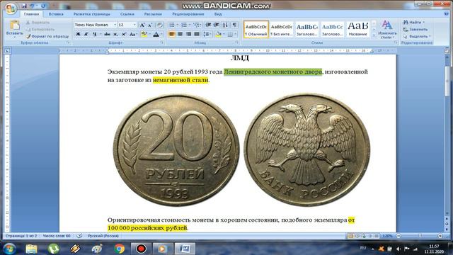 Дорогие монеты. 20 рублей 1993 г в. #редкиемонеты #дорогиемонеты #аукционы #1навкладкевтренде