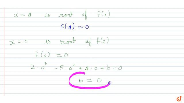 If `x=2` and `x=0` are roots of the polynomial `f(x)=2x^3-5x^2+a z+bdot` Find the values of `a` ...