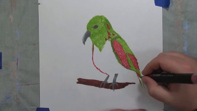 3 Marker Art Challenge - #003: Ruby Breasted Parrot