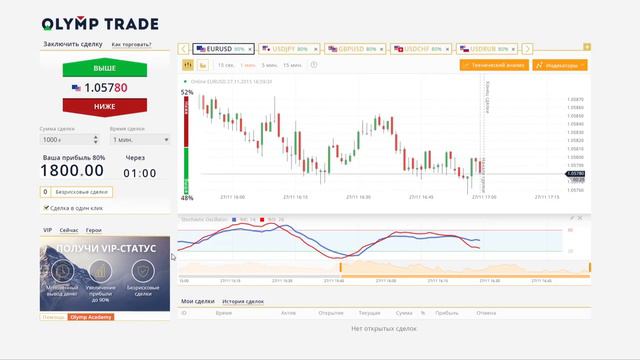 Торговля с индикатором Stochastic на платформе OLYMP TRADE