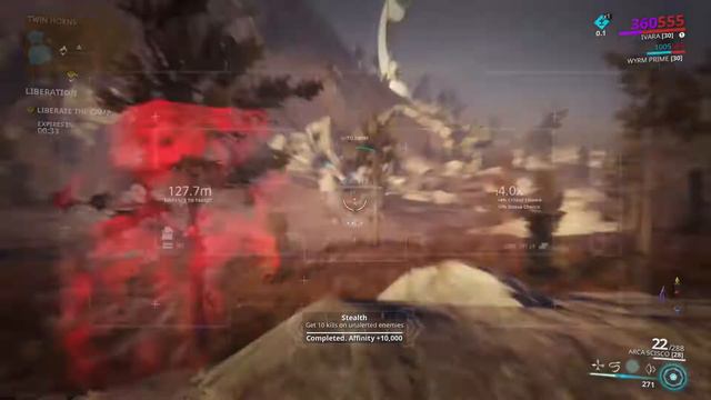 Warframe Shotgun Riven Challenge: Kill 10 enemies with headshots from at least 100 meters away.
