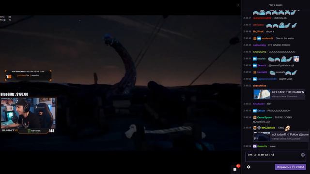 Summit1g reacts to kraken in sea of thieves