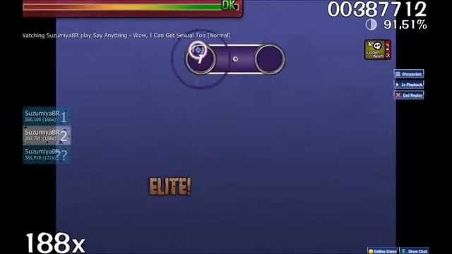 SuzumiyaBR jogando osu! vídeo 14 Say Anithing - Wow , I Can Get Sexual Too ( Censurado )