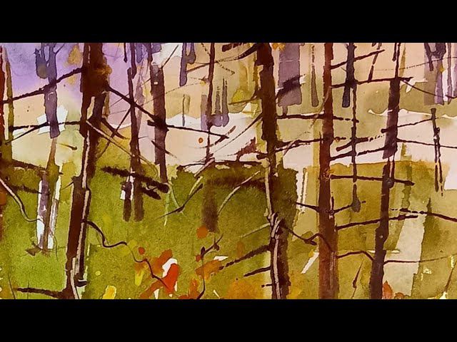 Watercolor painting. Прогулка по осеннему лесу, акварель. Метод работы от пятна.