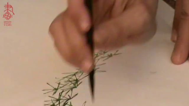 Обучение китайской живописи и живописи у-син. Ветки сосны с хвоей