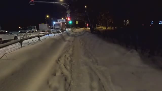 Мы прорвались в город. Едем на Автостанцию по не чищенному Солнечногорску.Уже стемнело.Где газеты?