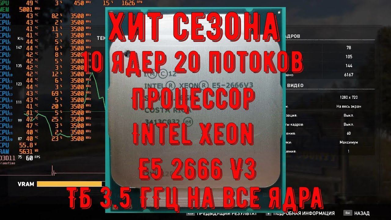 Процессор Intel Xeon E5 2666 V3 хит сезона 10 ядер, 20 потоков, частота при анлоке ТБ 3 5 ГГц