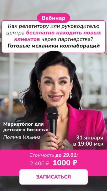 Вебинар «Как репетитору или руководителю центра бесплатно находить новых клиентов через партнерства?